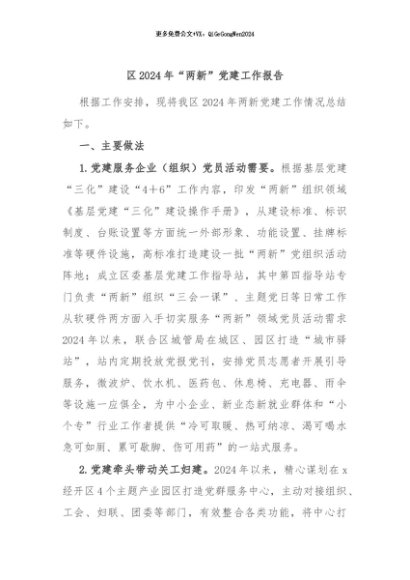 / 【七哥公文】2024年:区2024年“两新”党建工作报告+更多免费公文+VX:QiGeGongWen2024