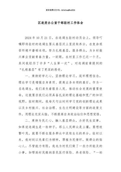 / 【七哥公文】2024年:区政府办公室干部驻村工作体会+更多免费公文+VX:QiGeGongWen2024