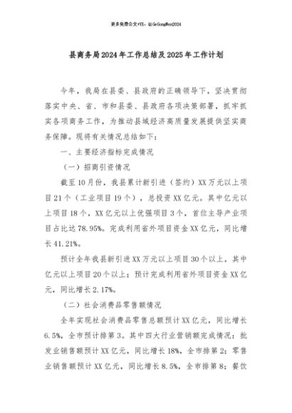 / 【七哥公文】2024年:县商务局2024年工作总结及2025年工作计划+更多免费公文+VX:QiGeGongWen2024