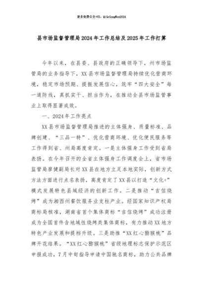 【七哥公文】2024年:县市场监督管理局2024年工作总结及2025年工作打算+更多免费公文+VX:QiGeGongWen2024