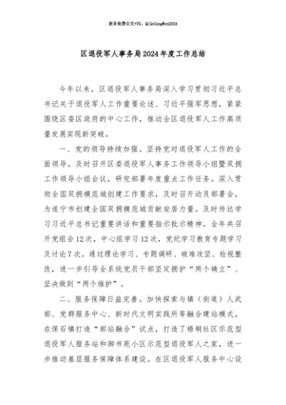 / 【七哥公文】2024年:区退役军人事务局2024年度工作总结+更多免费公文+VX:QiGeGongWen2024
