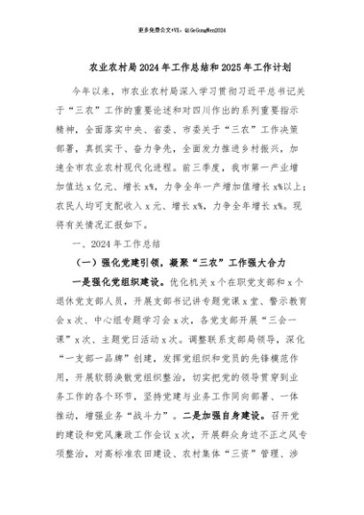/ 【七哥公文】2024年:农业农村局2024年工作总结和2025年工作计划+更多免费公文+VX:QiGeGongWen2024