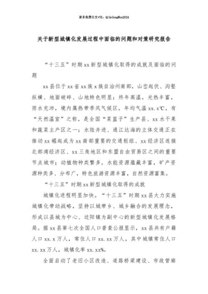 / 【七哥公文】2024年:关于新型城镇化发展过程中面临的问题和对策研究报告+更多免费公文+VX:QiGeGongWen2024