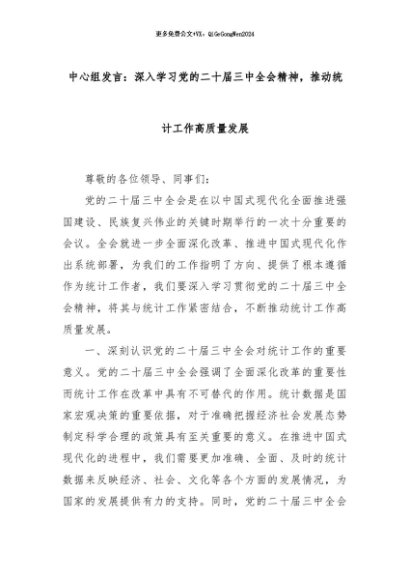 【七哥公文】2024年:中心组发言:深入学习党的二十届三中全会精神,推动统计工作高质量发展+更多免费公文+VX:QiGeGongWen2024
