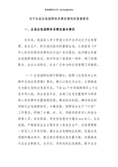 / 【七哥公文】2024年:关于全县应急指挥体系建设情况的监督报告+更多免费公文+VX:QiGeGongWen2024