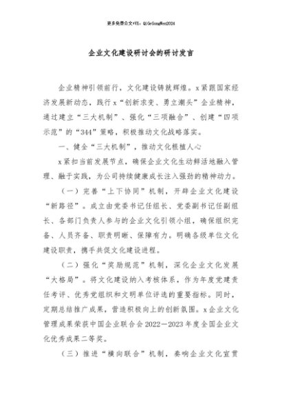 / 【七哥公文】2024年:企业文化建设研讨会的研讨发言+更多免费公文+VX:QiGeGongWen2024