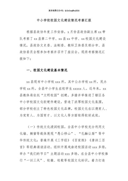 / 【七哥公文】2024年:中小学校校园文化建设情况考察汇报+更多免费公文+VX:QiGeGongWen2024