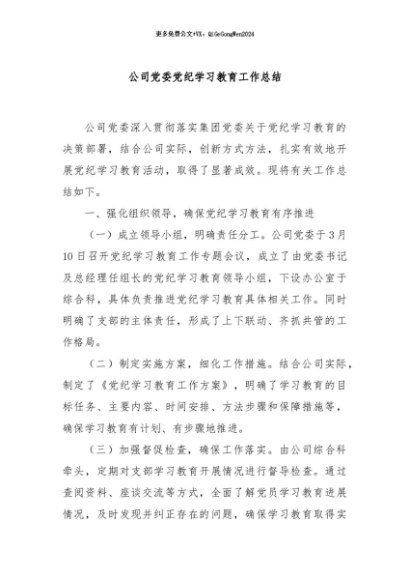 / 【七哥公文】2024年:公司党委党纪学习教育工作总结+更多免费公文+VX:QiGeGongWen2024