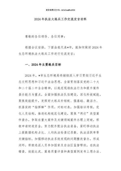 / 【七哥公文】2024年:2024年执法大练兵工作交流发言材料+更多免费公文+VX:QiGeGongWen2024