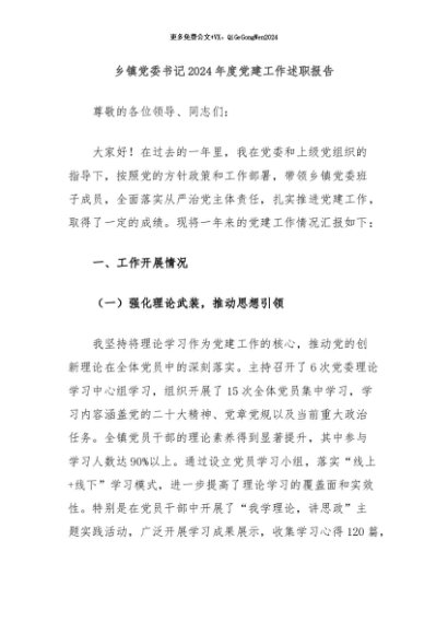 / 【七哥公文】2024年:乡镇党委书记2024年度党建工作述职报告+更多免费公文+VX:QiGeGongWen2024