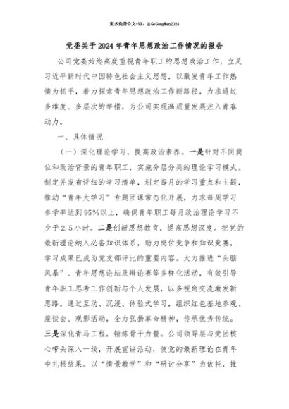 / 【七哥公文】2024年:党委关于2024年青年思想政治工作情况的报告+更多免费公文+VX:QiGeGongWen2024