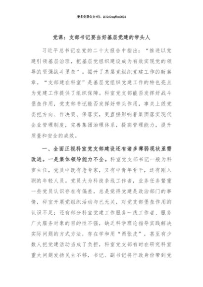 / 【七哥公文】2024年:党课:支部书记要当好基层党建的带头人+更多免费公文+VX:QiGeGongWen2024