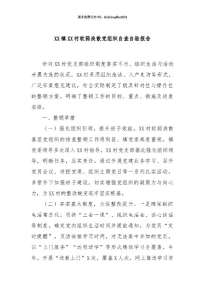 / 【七哥公文】2024年:XX镇XX村软弱涣散党组织自查自验报告+更多免费公文+VX:QiGeGongWen2024