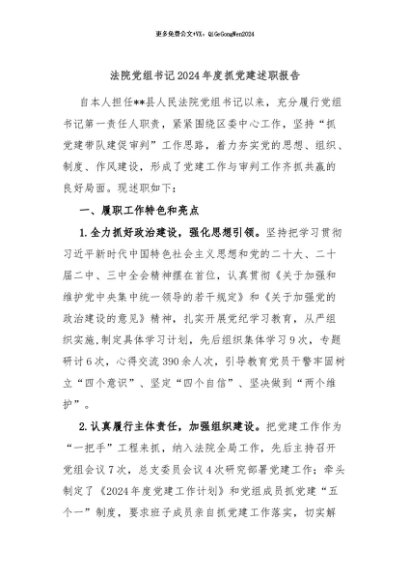 / 【七哥公文】2024年:法院党组书记2024年度抓党建述职报告+更多免费公文+VX:QiGeGongWen2024