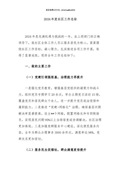 / 【七哥公文】2024年:2024年度社区工作总结+更多免费公文+VX:QiGeGongWen2024