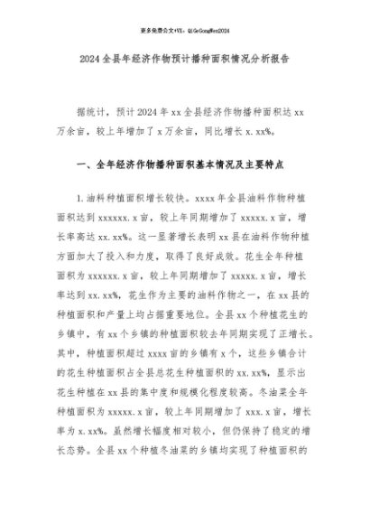/ 【七哥公文】2024年:2024全县年经济作物预计播种面积情况分析报告+更多免费公文+VX:QiGeGongWen2024