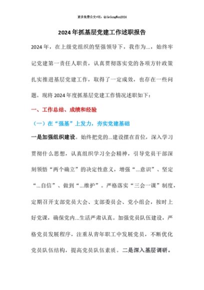 / 【七哥公文】2024年:2024年抓基层党建工作述职报告2+更多免费公文+VX:QiGeGongWen2024