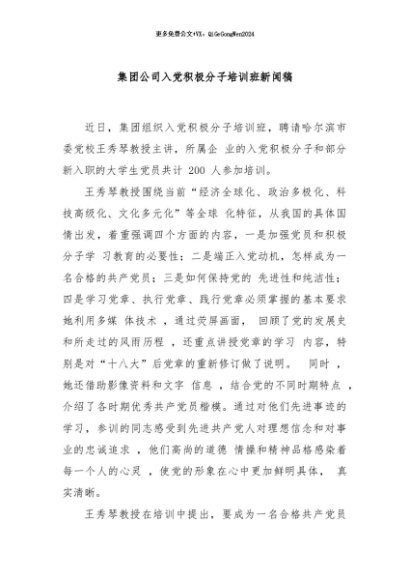 / 【七哥公文】2024年:集团公司入党积极分子培训班新闻稿+更多免费公文+VX:QiGeGongWen2024