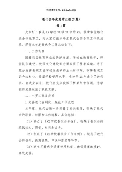 / 【七哥公文】2024年:(3篇)教代会年度总结汇报+更多免费公文+VX:QiGeGongWen2024