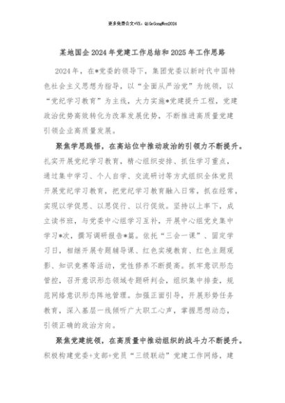 【七哥公文】2024年:某地国企2024年党建工作总结和2025年工作思路+更多免费公文+VX:QiGeGongWen2024