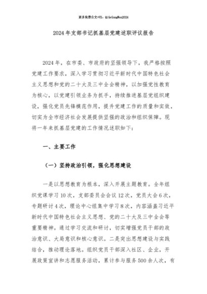/ 【七哥公文】2024年:2024年支部书记抓基层党建述职评议报告+更多免费公文+VX:QiGeGongWen2024