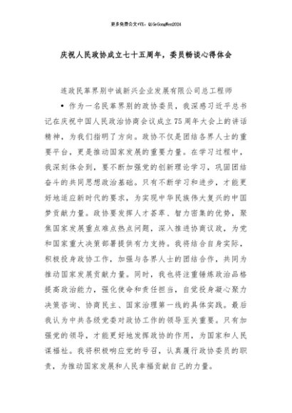 / 【七哥公文】2024年:庆祝人民政协成立七十五周年,委员畅谈心得体会+更多免费公文+VX:QiGeGongWen2024