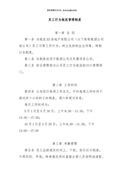 / 【七哥公文】2024年:员工行为规范管理制度+更多免费公文+VX:QiGeGongWen2024
