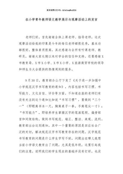 / 【七哥公文】2024年:在小学青年教师语文教学展示与观摩活动上的发言+更多免费公文+VX:QiGeGongWen2024