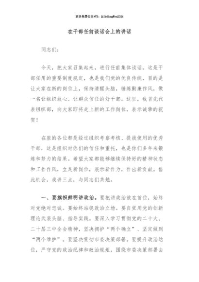 / 【七哥公文】2024年:在干部任前谈话会上的讲话+更多免费公文+VX:QiGeGongWen2024
