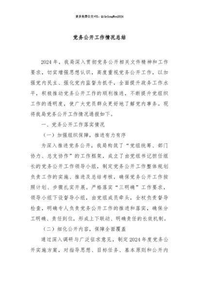 / 【七哥公文】2024年:党务公开工作情况总结+更多免费公文+VX:QiGeGongWen2024