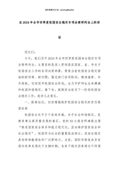 【七哥公文】2024年:在2024年全市四季度校园安全稳定专项会商研判会上的讲话+更多免费公文+VX:QiGeGongWen2024