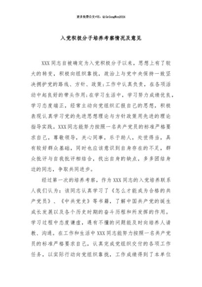 / 【七哥公文】2024年:入党积极分子培养考察情况及意见+更多免费公文+VX:QiGeGongWen2024