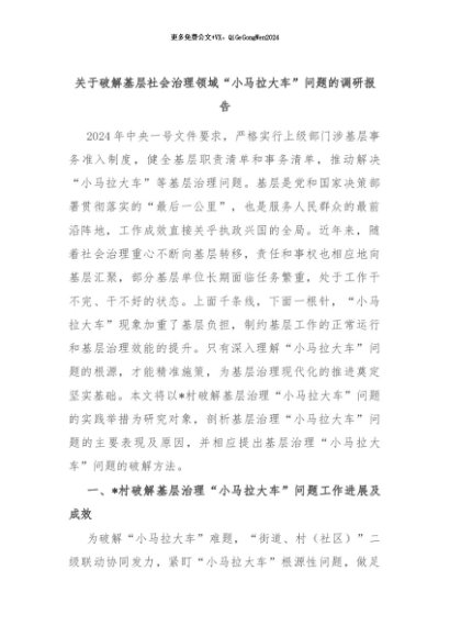 【七哥公文】2024年:关于破解基层社会治理领域“小马拉大车”问题的调研报告+更多免费公文+VX:QiGeGongWen2024