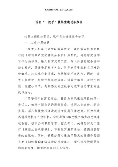 / 【七哥公文】2024年:国企“一把手”基层党建述职报告+更多免费公文+VX:QiGeGongWen2024