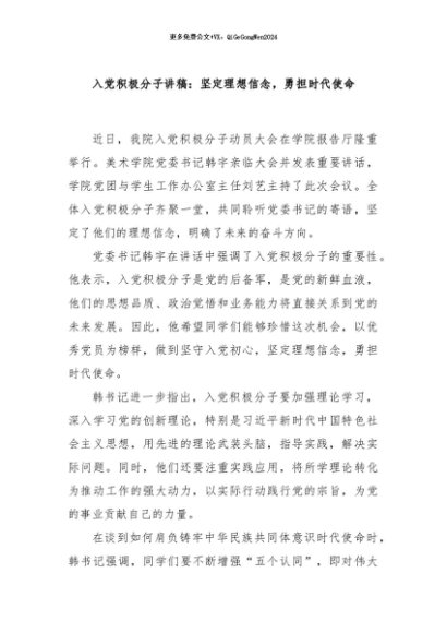 / 【七哥公文】2024年:入党积极分子讲稿:坚定理想信念,勇担时代使命+更多免费公文+VX:QiGeGongWen2024