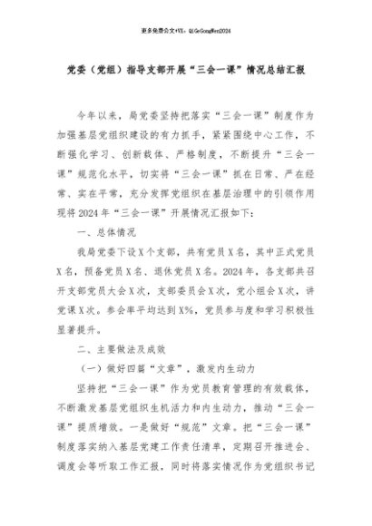 / 【七哥公文】2024年:党委(党组)指导支部开展“三会一课”情况总结汇报+更多免费公文+VX:QiGeGongWen2024