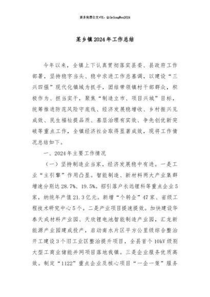 / 【七哥公文】2024年:某乡镇2024年工作总结+更多免费公文+VX:QiGeGongWen2024