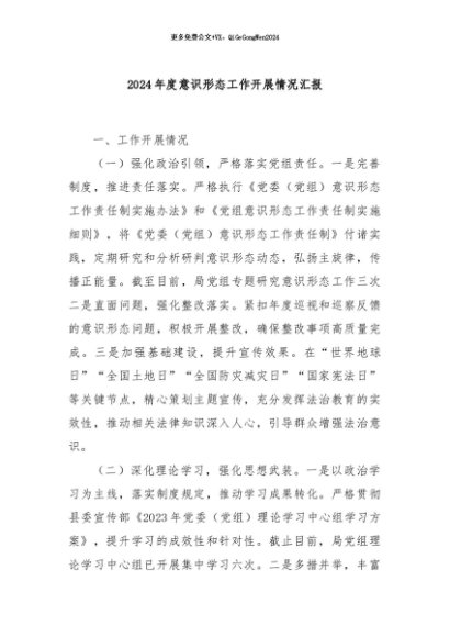 / 【七哥公文】2024年:2024年度意识形态工作开展情况汇报+更多免费公文+VX:QiGeGongWen2024