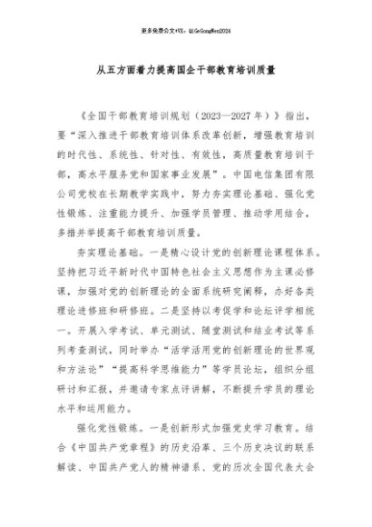 / 【七哥公文】2024年:从五方面着力提高国企干部教育培训质量+更多免费公文+VX:QiGeGongWen2024