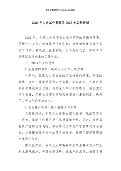 / 【七哥公文】2024年:2024年人大工作总结及2025年工作计划+更多免费公文+VX:QiGeGongWen2024
