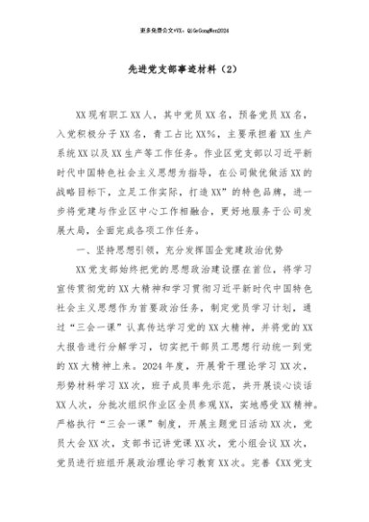 / 【七哥公文】2024年:先进党支部事迹材料(2)+更多免费公文+VX:QiGeGongWen2024