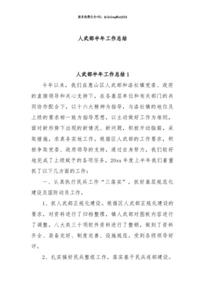 / 【七哥公文】2024年:人武部半年工作总结+更多免费公文+VX:QiGeGongWen2024