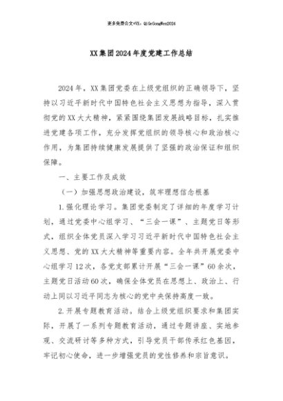 / 【七哥公文】2024年:XX集团2024年度党建工作总结+更多免费公文+VX:QiGeGongWen2024