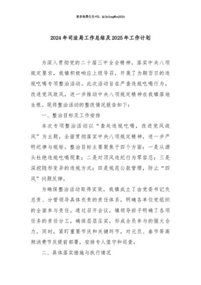 / 【七哥公文】2024年:2024年司法局工作总结及2025年工作计划+更多免费公文+VX:QiGeGongWen2024