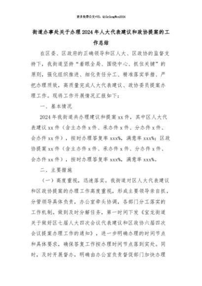 【七哥公文】2024年:街道办事处关于办理2024年人大代表建议和政协提案的工作总结+更多免费公文+VX:QiGeGongWen2024