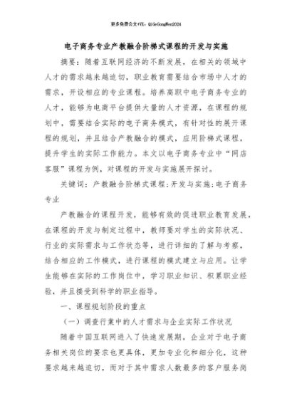 / 【七哥公文】2024年:电子商务专业产教融合阶梯式课程的开发与实施+更多免费公文+VX:QiGeGongWen2024