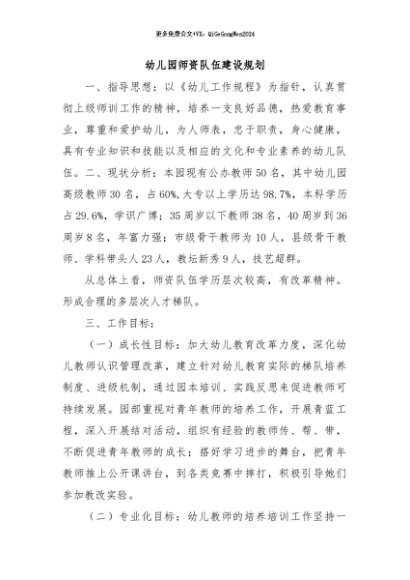 【七哥公文】2024年:幼儿园师资队伍建设规划+更多免费公文+VX:QiGeGongWen2024