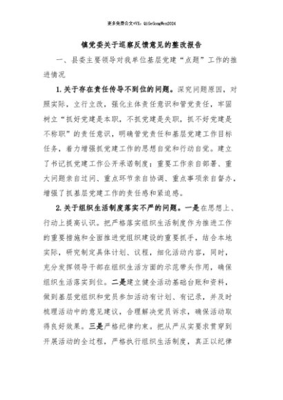/ 【七哥公文】2024年:镇党委关于巡察反馈意见的整改报告+更多免费公文+VX:QiGeGongWen2024