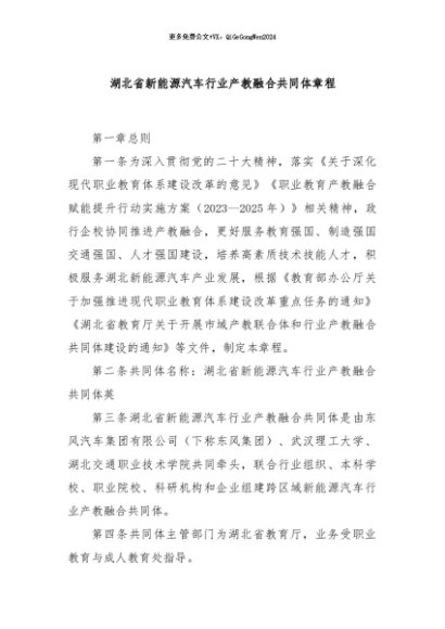 / 【七哥公文】2024年:湖北省新能源汽车行业产教融合共同体章程+更多免费公文+VX:QiGeGongWen2024