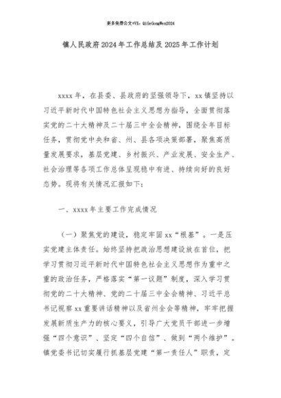 / 【七哥公文】2024年:镇人民政府2024年工作总结及2025年工作计划+更多免费公文+VX:QiGeGongWen2024